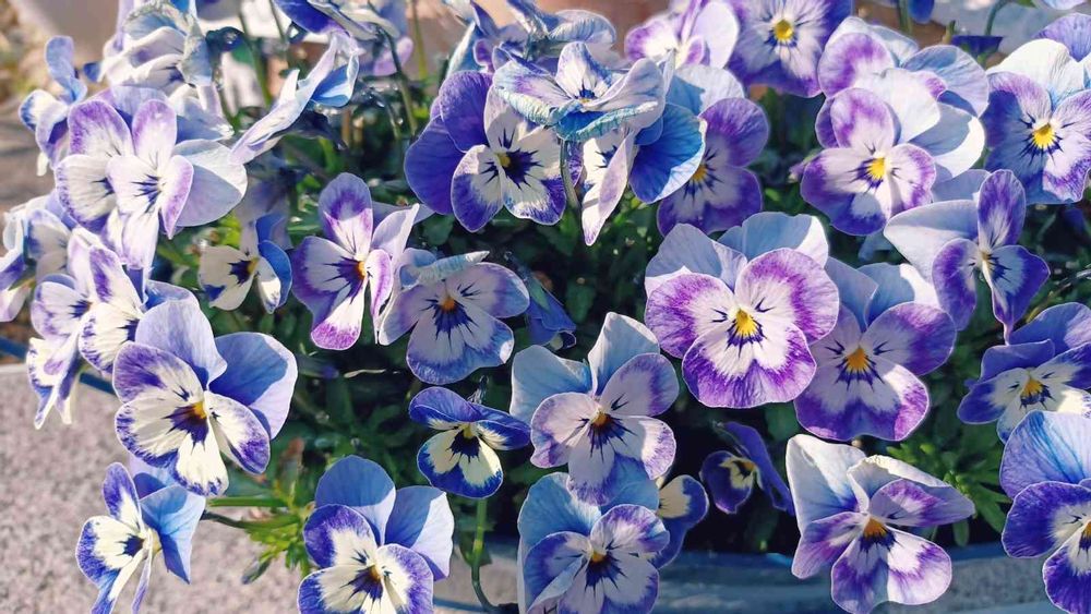 葉っぱも見えない位わんさか咲いてるお気にいりのビオラさんでお祝いさせて下さい💙💜