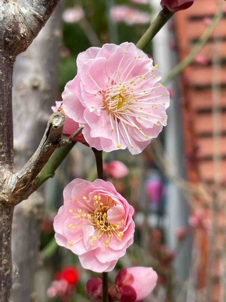 鉢植えしている花梅の見驚が開花してきました!今年は我が家の河津桜よりも遅く開花となりました。