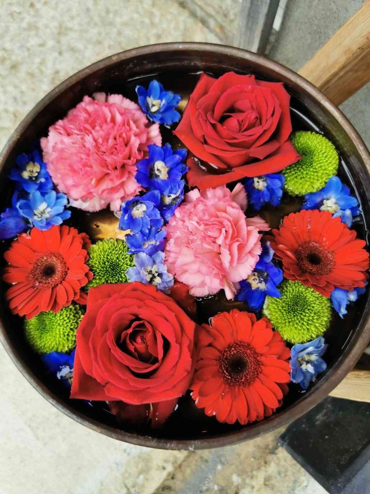 川越の商家、百足屋(むかでや)さんの花手水💐