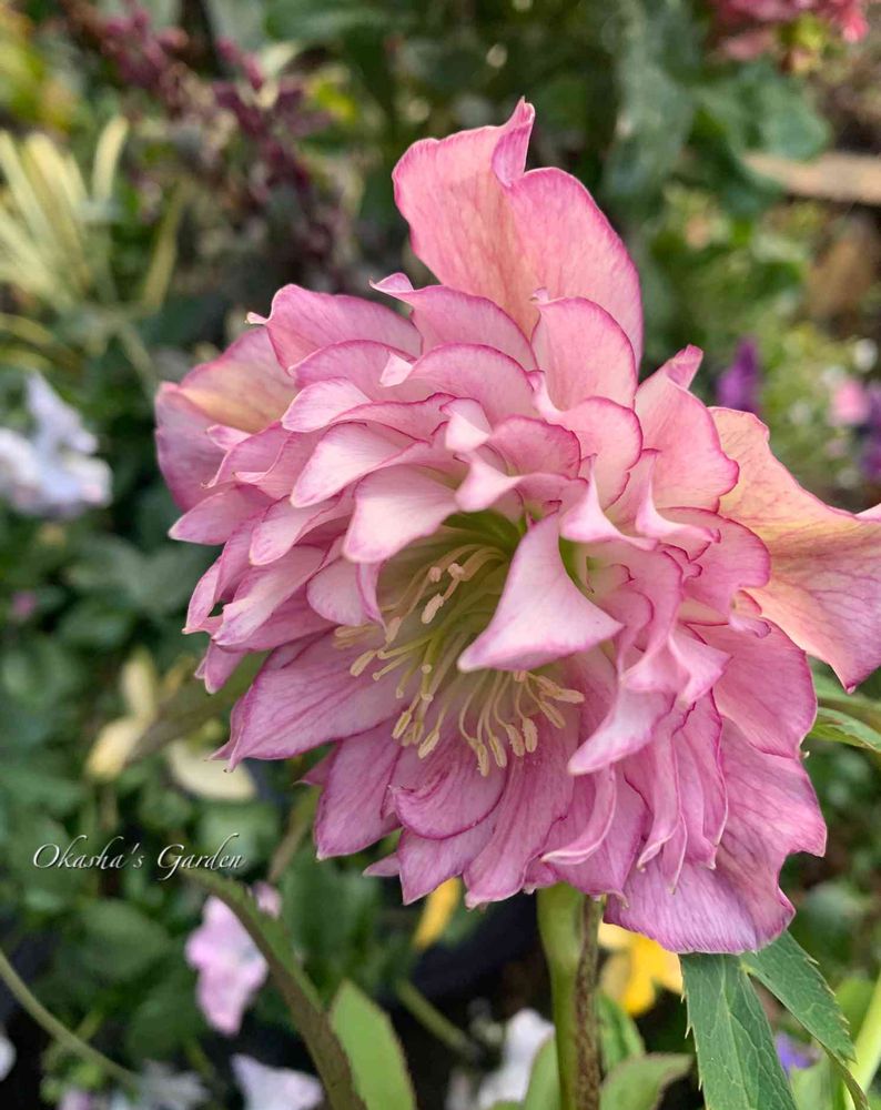 洗練されたクリスマスローズさんですね。クレオパトラって、濃い色のイメージあるけど、こちらは、ピンクで、ピコってて、春色全開って感じですね。でも、クレオパトラ特有の細かな剣弁が幾重にも重なってて。来年は、クレオパトラに昇格間違いなし。期待してます。