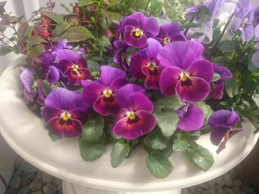 ビオラも綺麗な鉢に植えられて光りますね✨