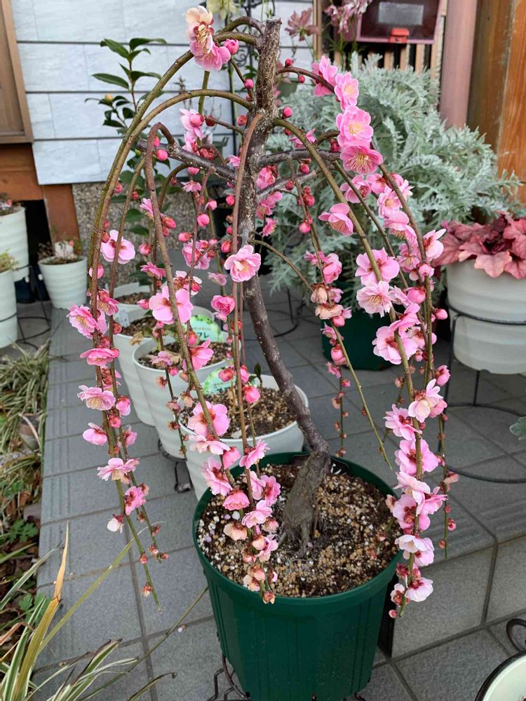 我が家の枝垂れ梅が7分咲きくらいに。春は目の前!オラ、ワクワクすっぞ!w