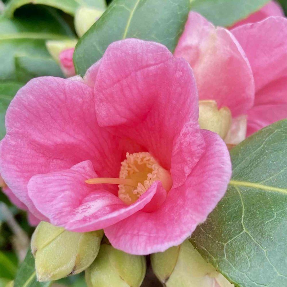 優しいピンク色が柔らかな表情のユキツバキ系のお花🌸🌸