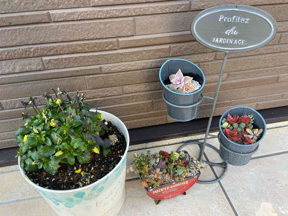 ビオラも多肉ちゃんと同じ軒下にとりあえず避難です😰