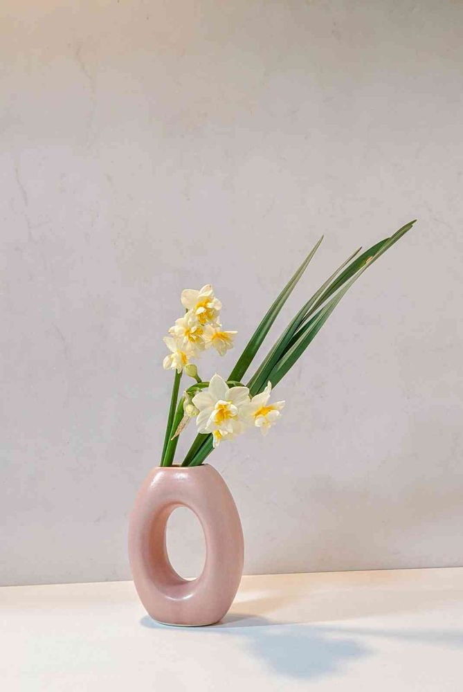 優しいピンクの花瓶に優しげな水仙がピッタリだと思います😄☺️