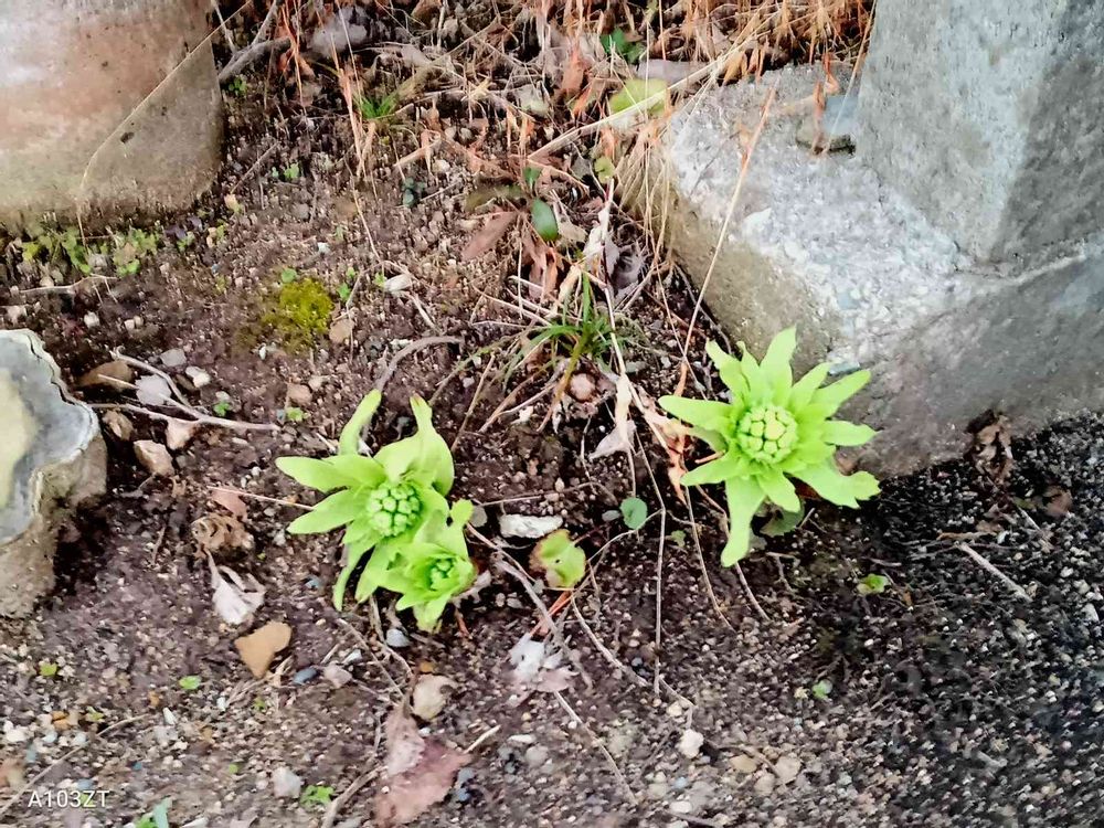 散策の帰り道に、ご近所の通り道のお宅の、お勝手口に蕗の薹が出て来ていました。