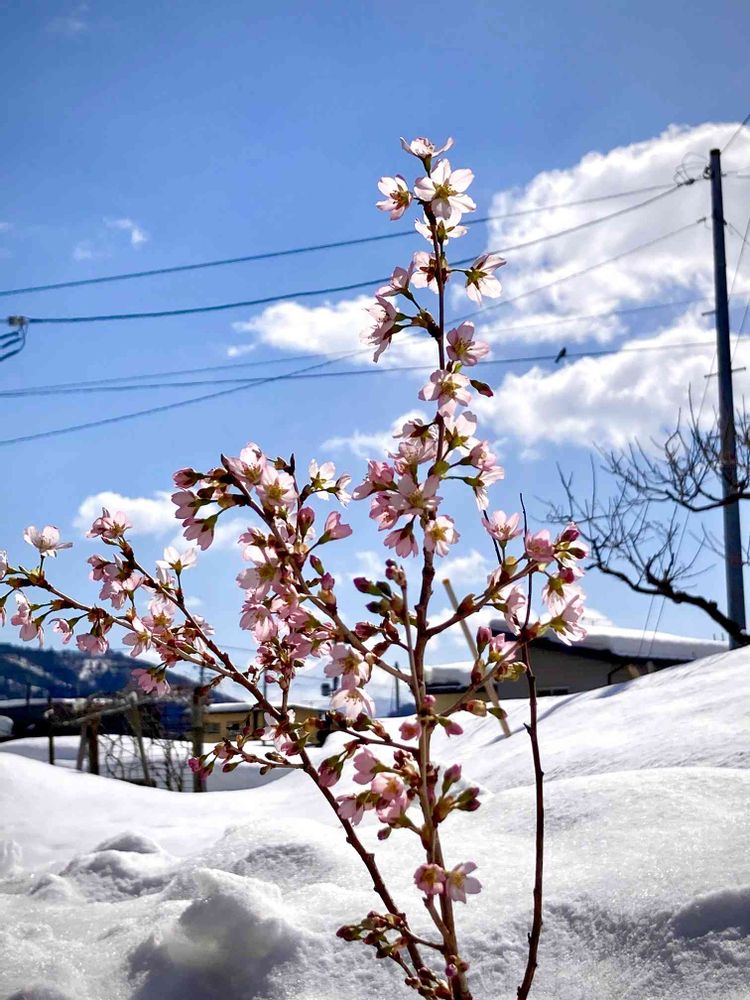 あまりにも天気が良かったので、花瓶より借りて桜🌸と雪とスマホで遊んだという事ですね。🎶😅