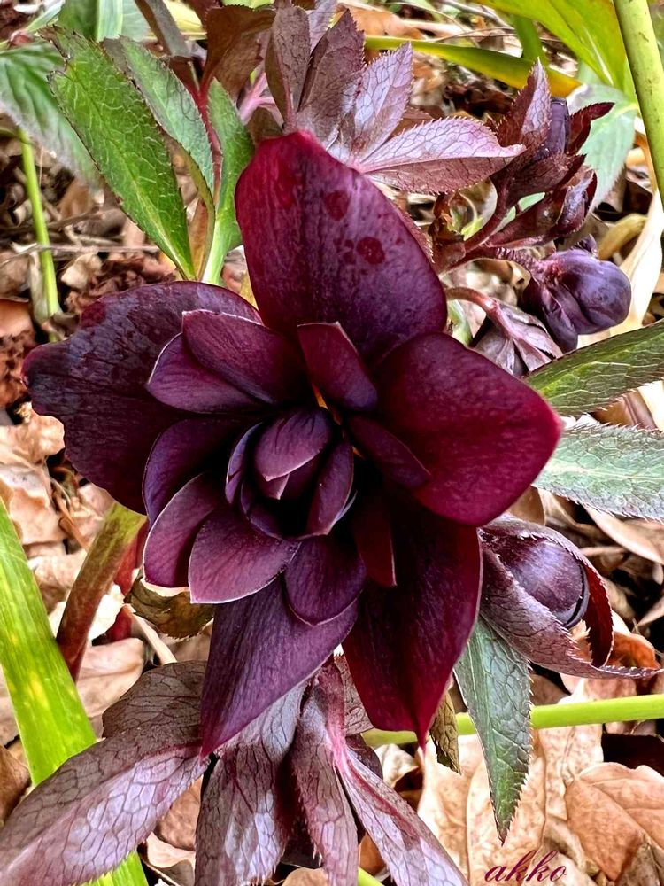 我が家の花畑の八重ブラックの、クリスマスローズ🖤