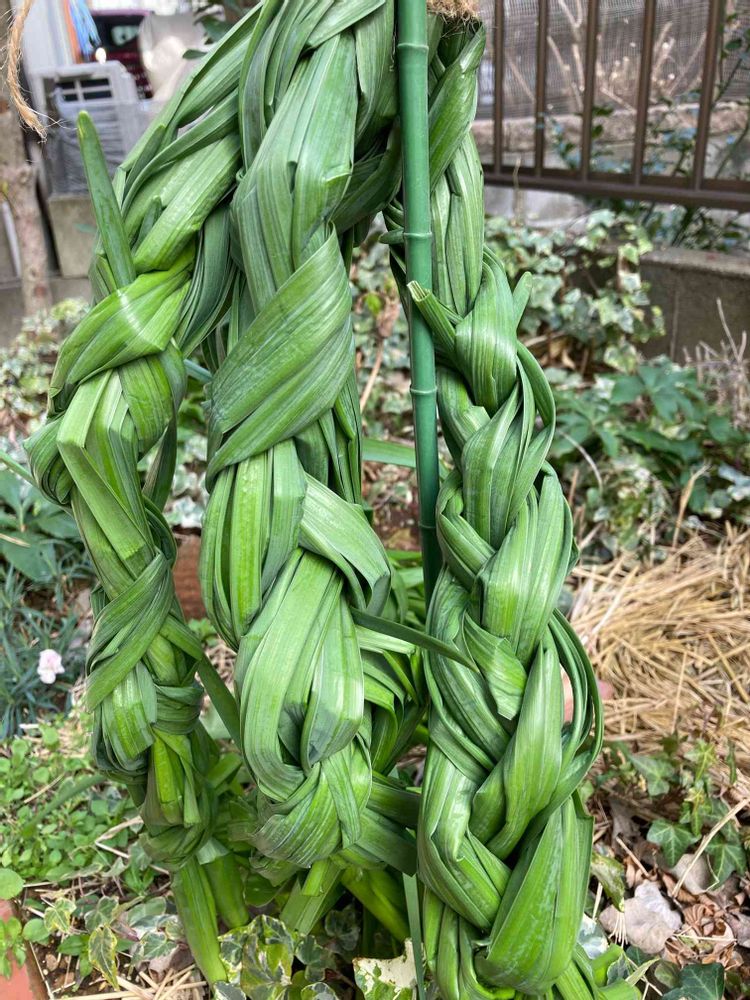 水仙の葉❣️こちらでもダランとなるのが嫌いな人は紐で縛ってたりします。編んだのは初めて見ました😆💕
