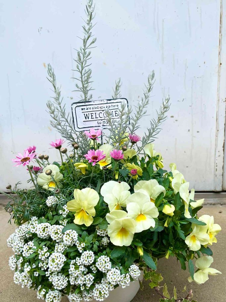 ローダンセマムのピンクが合って、とても可愛い寄せ植えですね💕