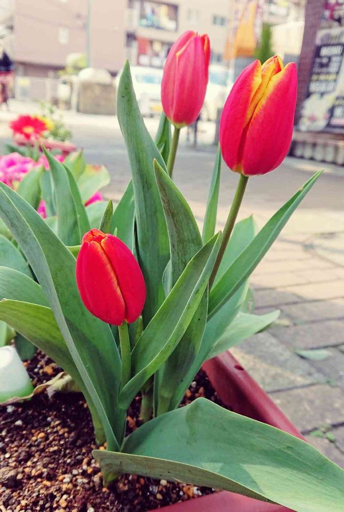 お花屋さんで買うチューリップ🌷じゃなくて、土で育ってるモノをずっと探してました( ´∀`)