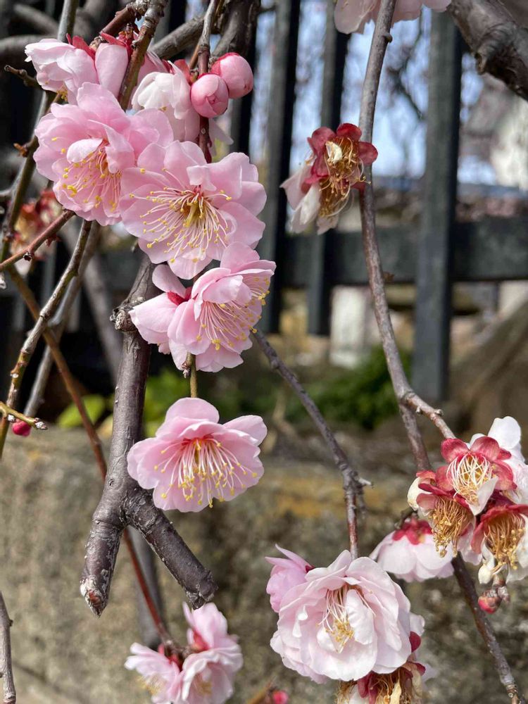 近くで見ると八重の可愛い花ですが、離れて全体をみると圧感で豪華な梅の花です🌸🌸🌸