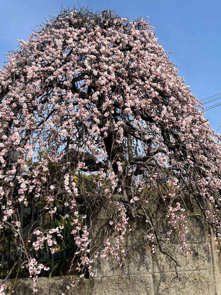 この家のお婆さんから嫁ぐ前から枝垂れ梅が有るので100年以上前から有ると言っていました🌸