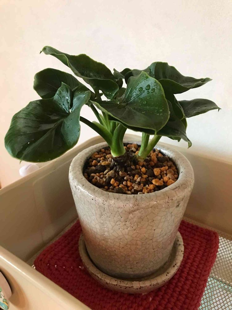 ホムセンで気になってお迎えしたものです。フィロデンドロンて書いてあるけどどの種類だろ?と帰ってから調べてて、普通のセロームかと思っていたらスーパーアトムかも。小さめのほうが嬉しいのでそうならいいな〜