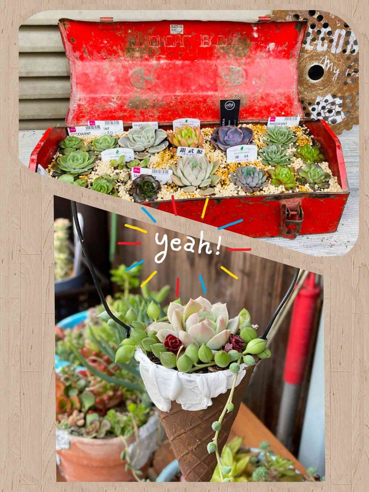 自作のワッフルコーン鉢に寄せ植え作り🍦