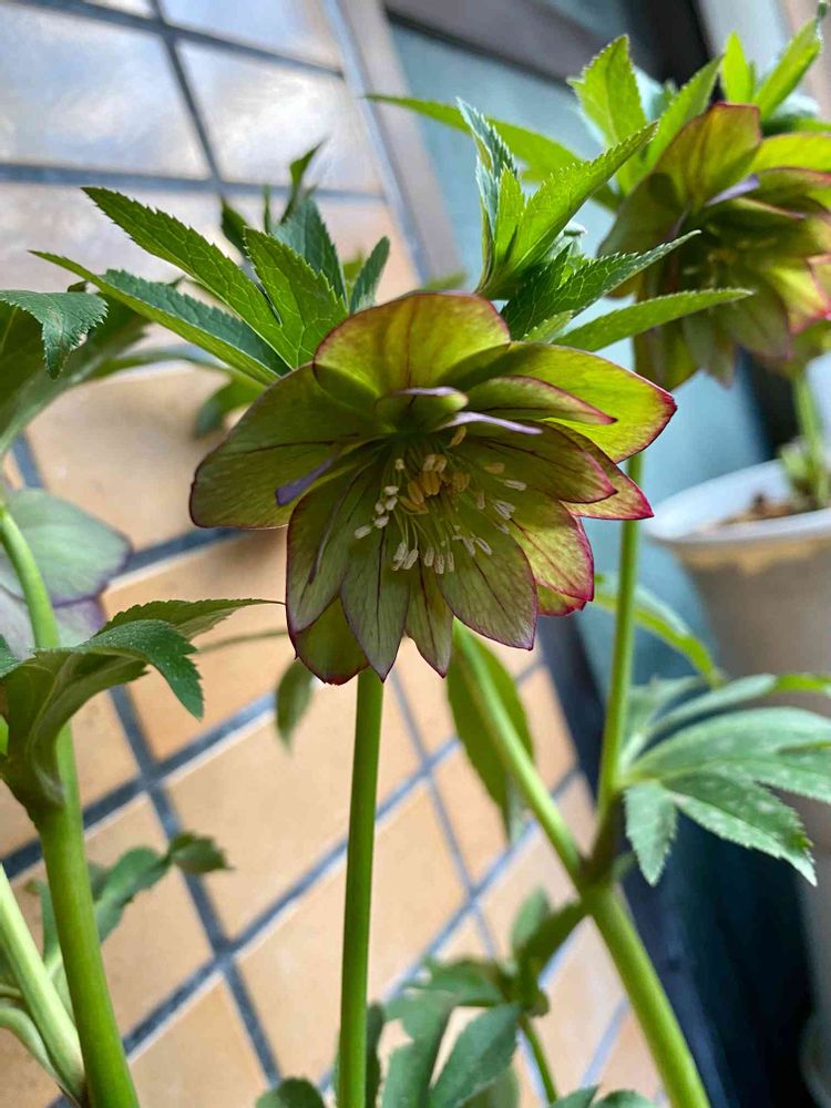 バルコニー/ベランダ,クリスマスローズ,クリスマスローズ ダブル グリーン バイカラーの投稿画像