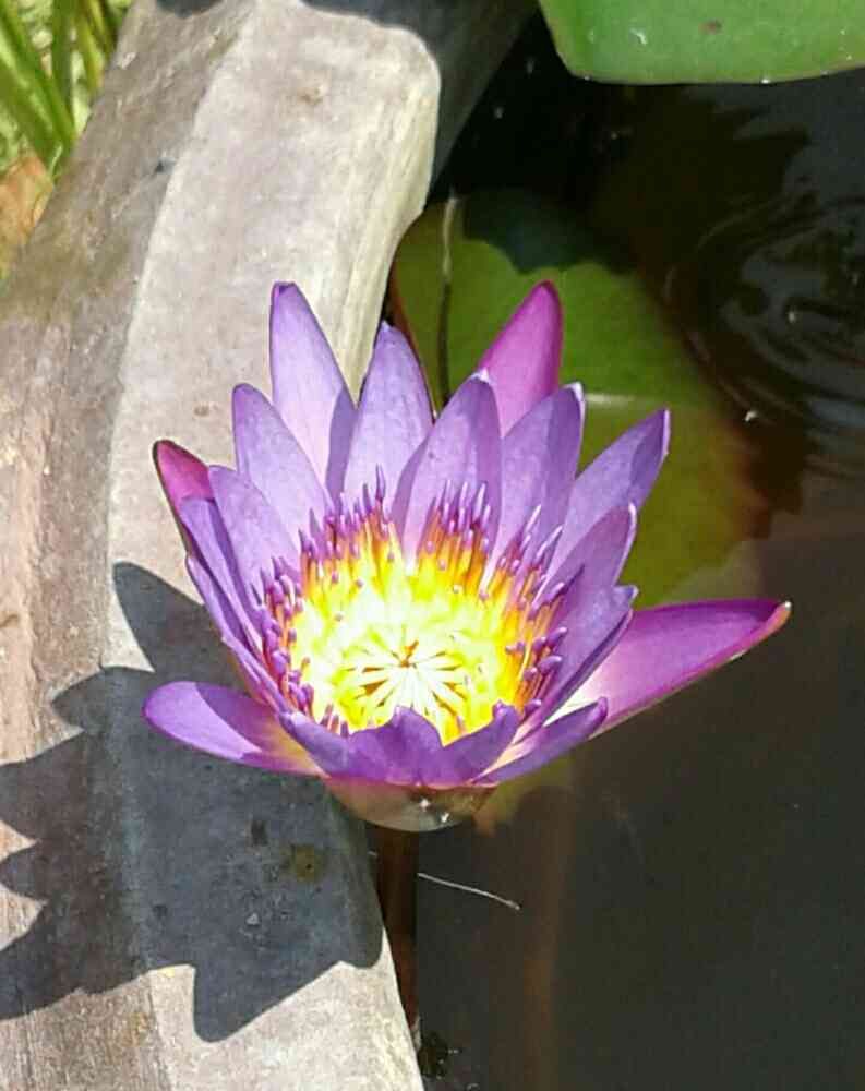 パープル投稿4で、隣の黒ちゃん🐱が水飲み場にしているスイレン鉢の熱帯スイレンです。