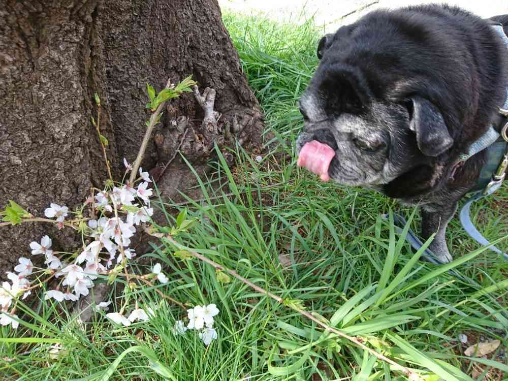 久しぶりの元気なグーさん🐶。🌸愛でるつもりなのかな?😁