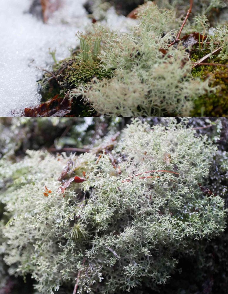 地衣類は菌類と藻類の共生体で、高山から低地まで分布している。