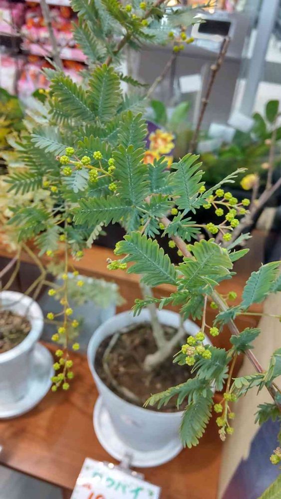 スーパーのお花売り場でミモザの鉢植えが売られていました🌟