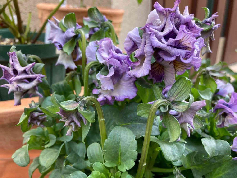 フリフリ花弁が、パンジードラキュラに似てますね😊フリフリタイプは、豪華だから花数少なめかと思ってだけど、そんな事はない様ですね‼️これから、もっと咲きそうですね✨