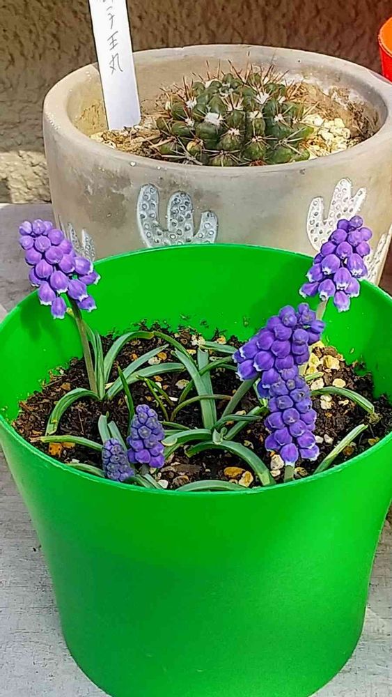 うちの何年めかわからなくなったムスカリさんたち、とってものんびりで、葉っぱをかき分けたらまだまだ下の方にチラッと蕾が控えてる状態です😅