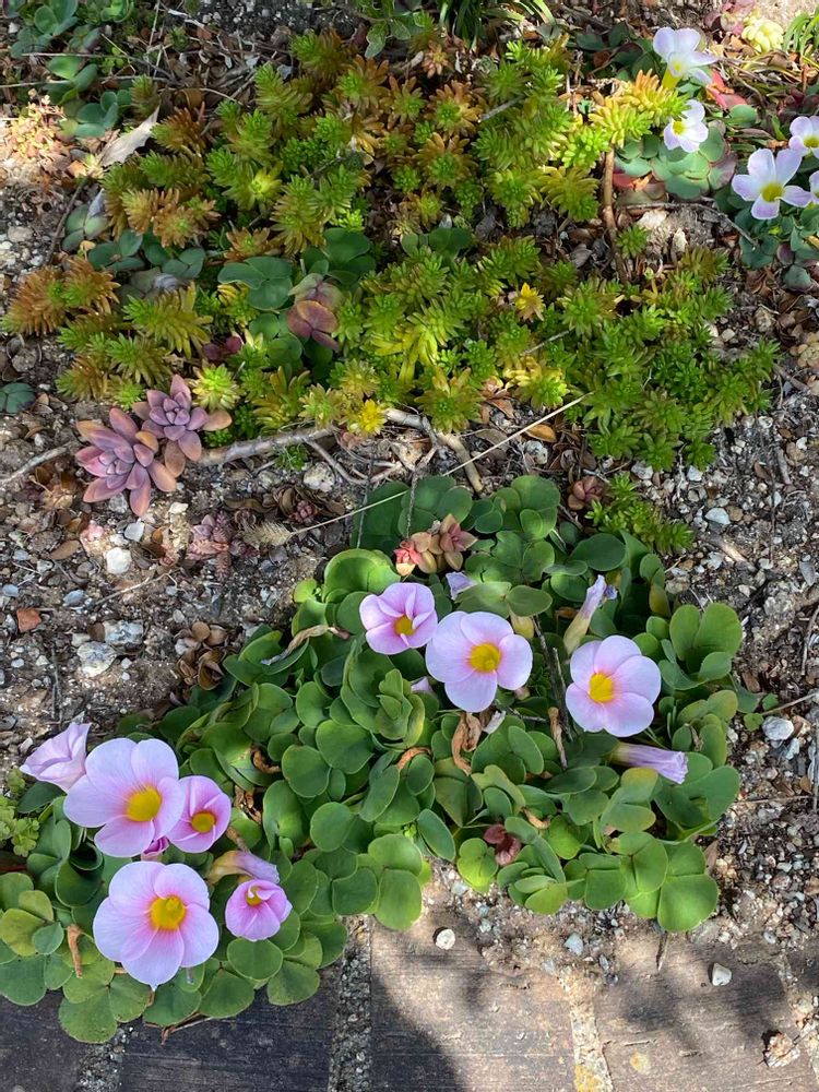 オキザリスを中心に、小さな庭で花を楽しんでいます。