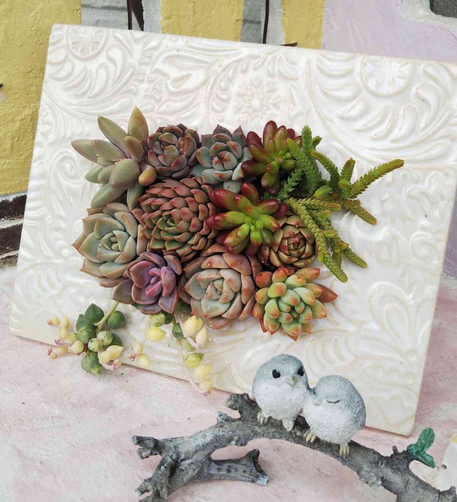 あら♥上手くヒビを隠して寄せ植えしたのね✨