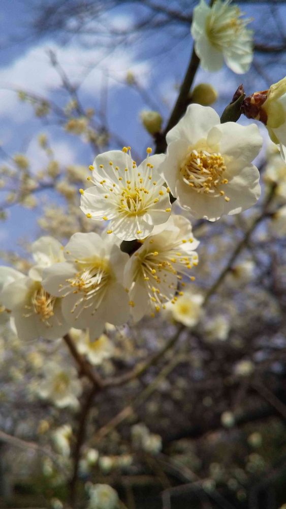 ワクチン注射💉の帰り、青天のもと桜通りにて「白梅」をパチリ!📸💙💮😊😄😷🌞✌️