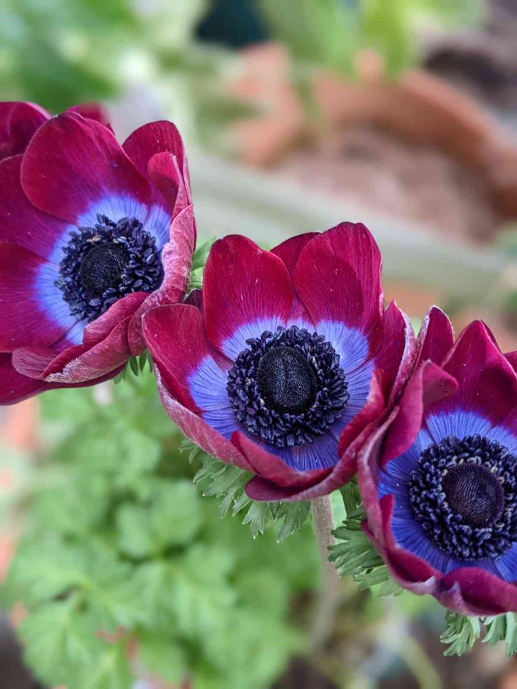 このアネモネは、蕾の時はチョコレートだぁ〜って思ったんですが🙂開いたらワインレッドでもっと開いたら青💙でした😆