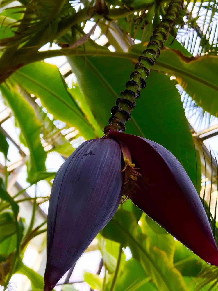 すごいょね〜バナナのお花。雄花雌花が別々でこの長い花茎も迫力ありました(≧∇≦)ちょっと私温室で食べられちゃいそう〜💦てくらい大きなお花です。