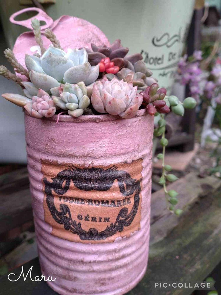 リメ缶と多肉ちゃんの色合いが合ってて素敵だね🎀💕💓💗(´ ˘ `∗)