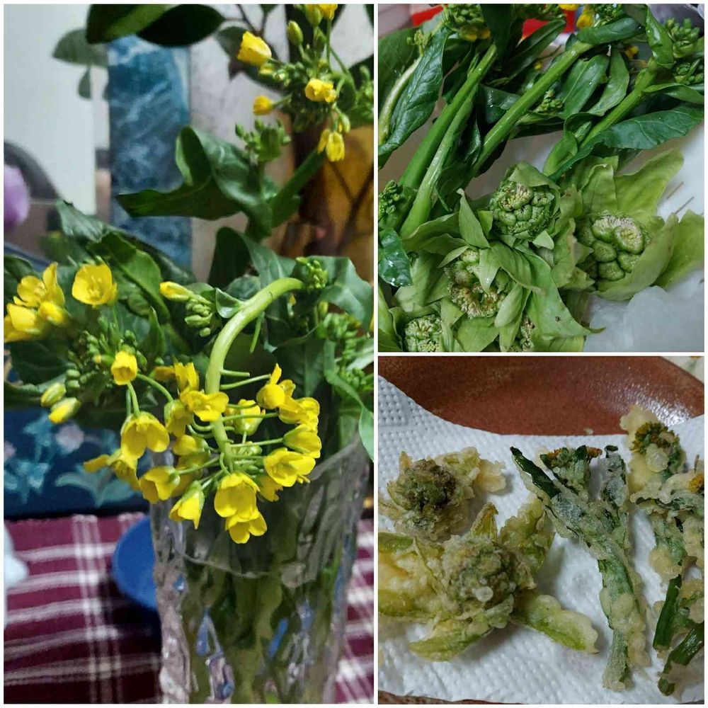 昨日庭で見つけたフキノトウ🌱と去年育てていたアスパラ菜(オータムポエム)🌿を天ぷらにして🔪🎽ほろ苦い春の味でした😋