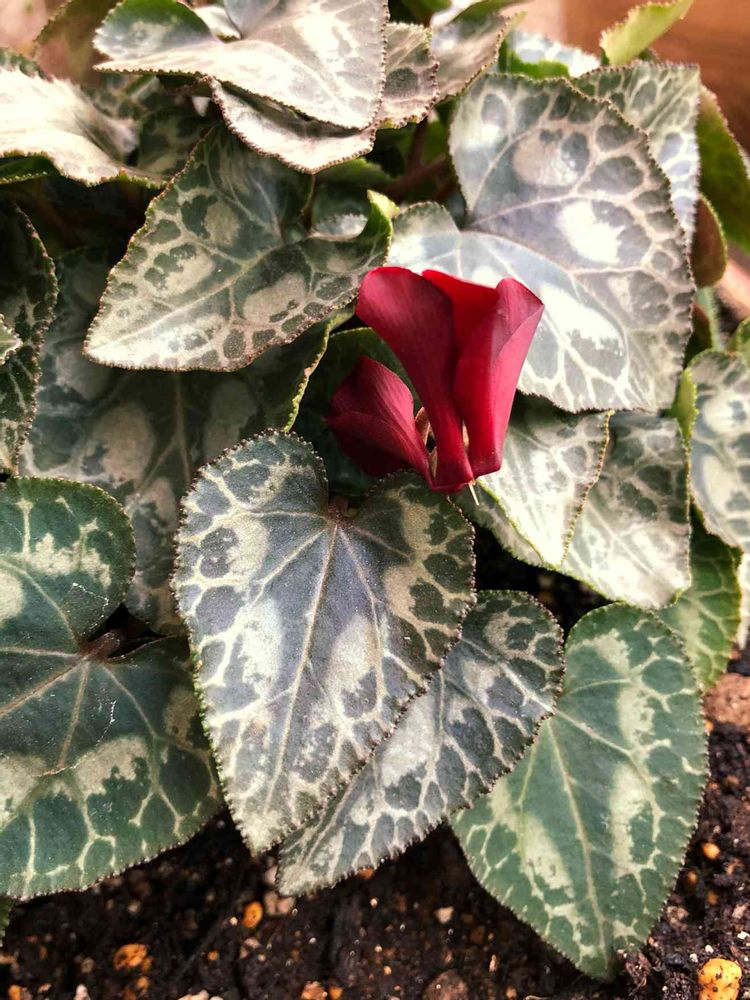 去年買ってすぐに、お花が枯れてしまったミニシクラメン(赤)