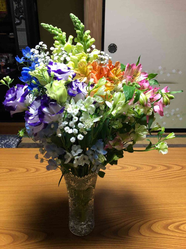 お父様がおなくなりになりまだまだ気持ちが整理できないですよね。お仏壇に語りかける事もあるでしょう。仏花が華やかだと祈る側の気持ちも癒されますね。