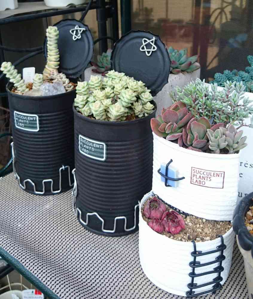 黒のリメ缶には是非クラッスラを植えてほしいと店員のお姉さん言われたのでパステル、ファンタジーを植えました❤️