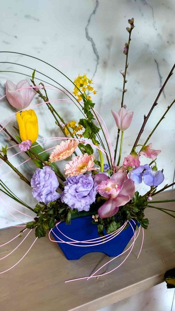 ピンクの水引き使いが春らしくて華やかなアレンジメント👍💕