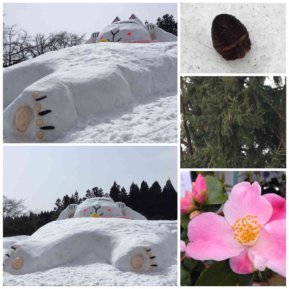 昨日、地元で雪像を作ったとの事で、見に来ました。寝そべりニャンコ😸