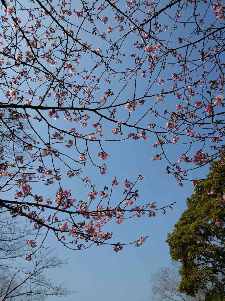スカスカでだけど来週は青空が見えないぐらい満開になるといいな~💕