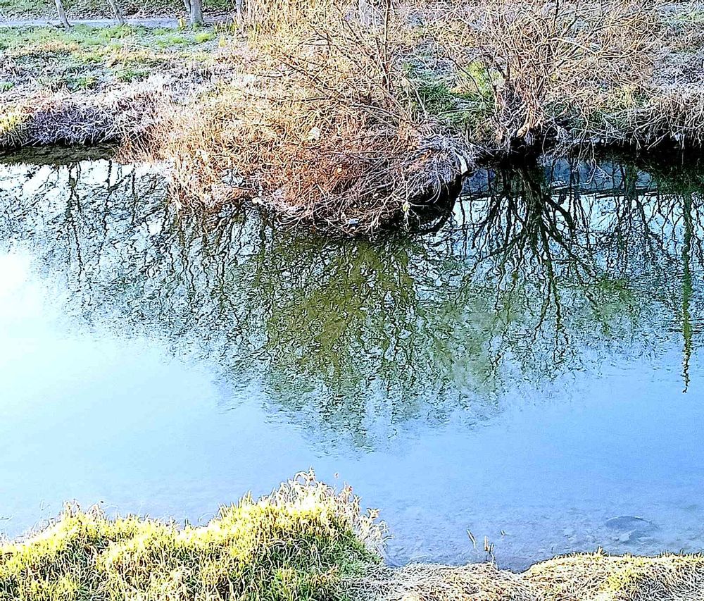 椹野川沿いを散策中に、水面の🌳の影が綺麗でした。