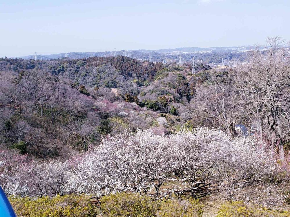 頂上付近の白梅はおおむね満開、心臓をビリッビリに破る階段の途中はまだまだ3分咲き。