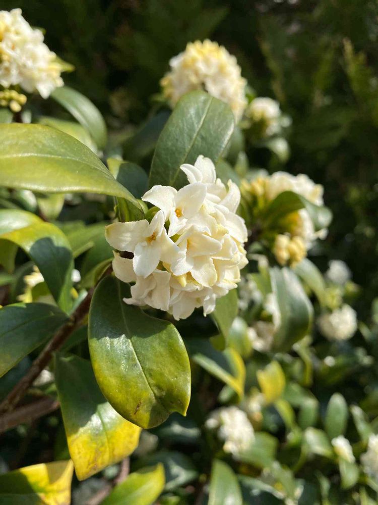 図書館への道すがら、いつのまにか沈丁花が咲いていました。