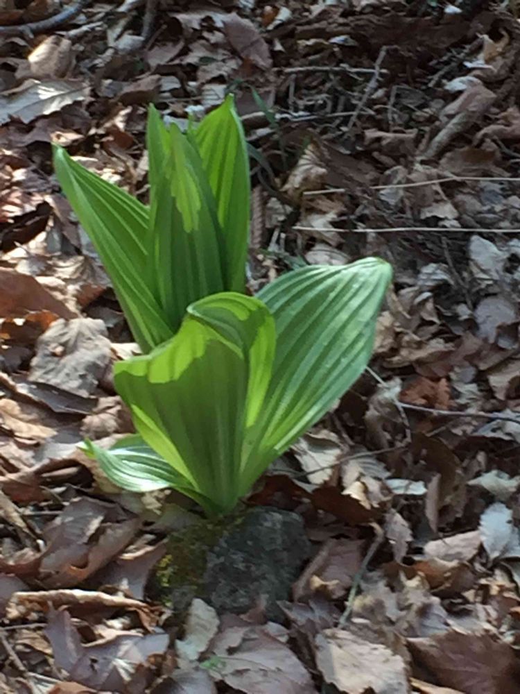 コバイケイソウですね。三重県鈴鹿山脈の藤原岳周辺で、カタクリの花が咲き始める頃にいくらでも見られます。