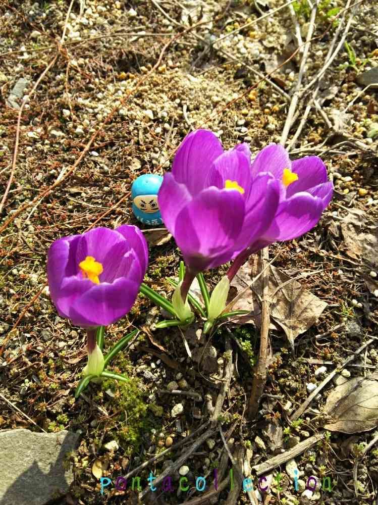 春が来たね〰️クロッカスとダルマんお似合いだネ〰️👀💕