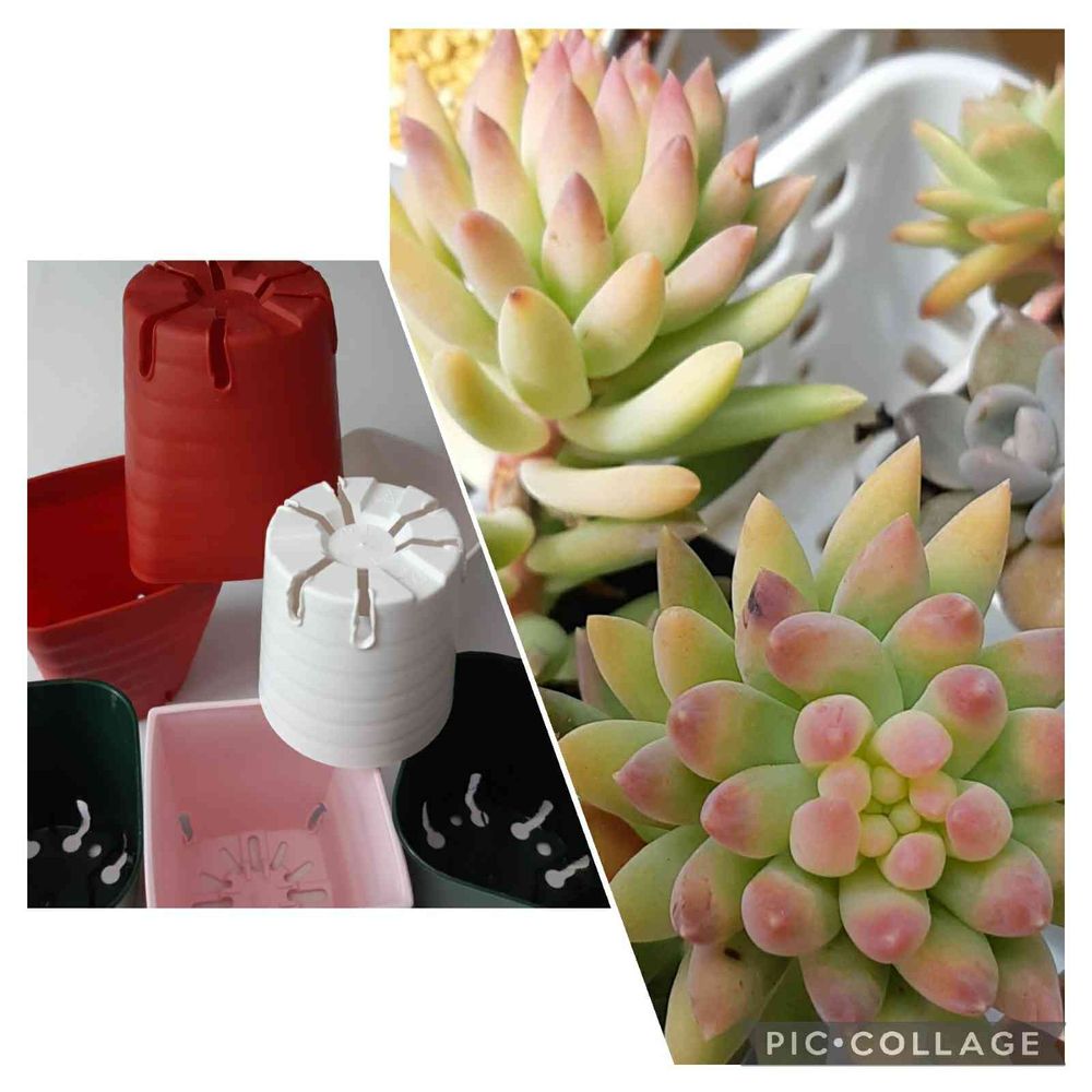 HC等で買った多肉が入っていたプラ鉢にスリット入れてみました😄 水はけを良くするのと 乾きを良くするために😄自分としては良いアイデアだと思っています😆🎶