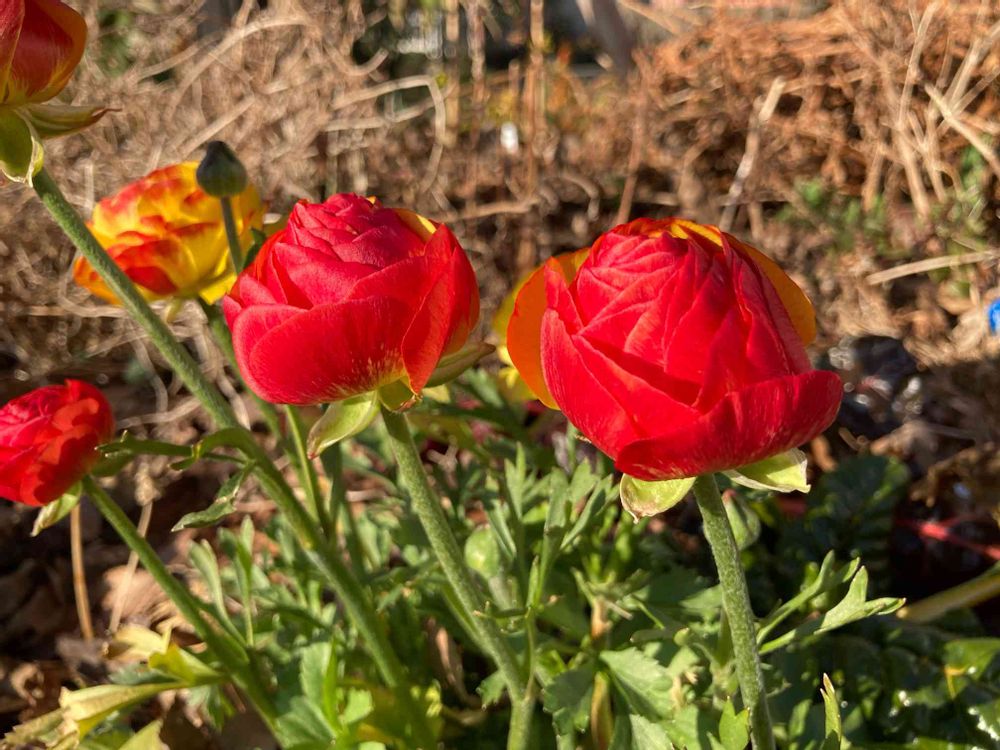 くクレタの輝きは、朝一番にはこのように赤い蕾をしています。昼の姿とは別人みたい。