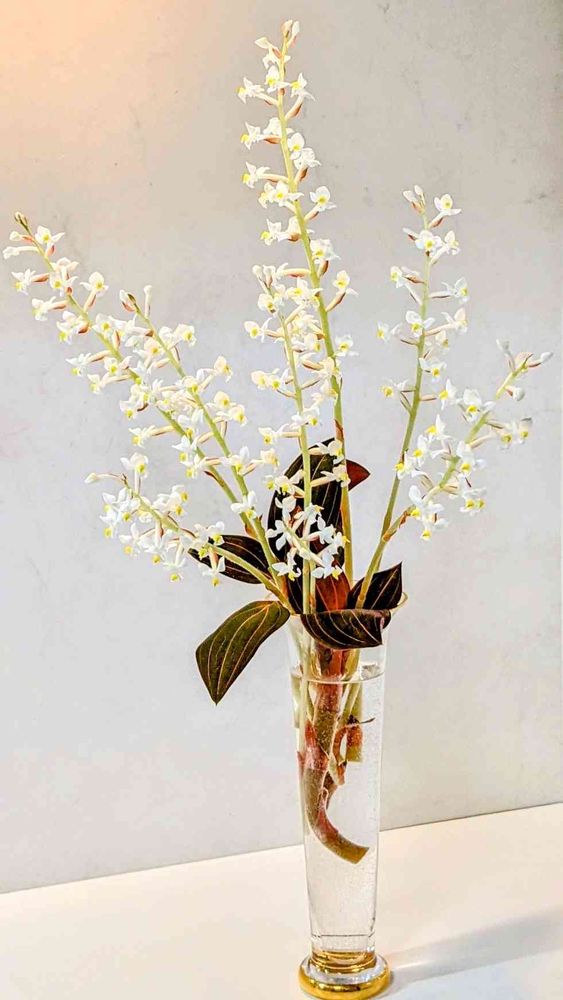 たくさん咲いたホンコンシュスランをカットして生けてみました。