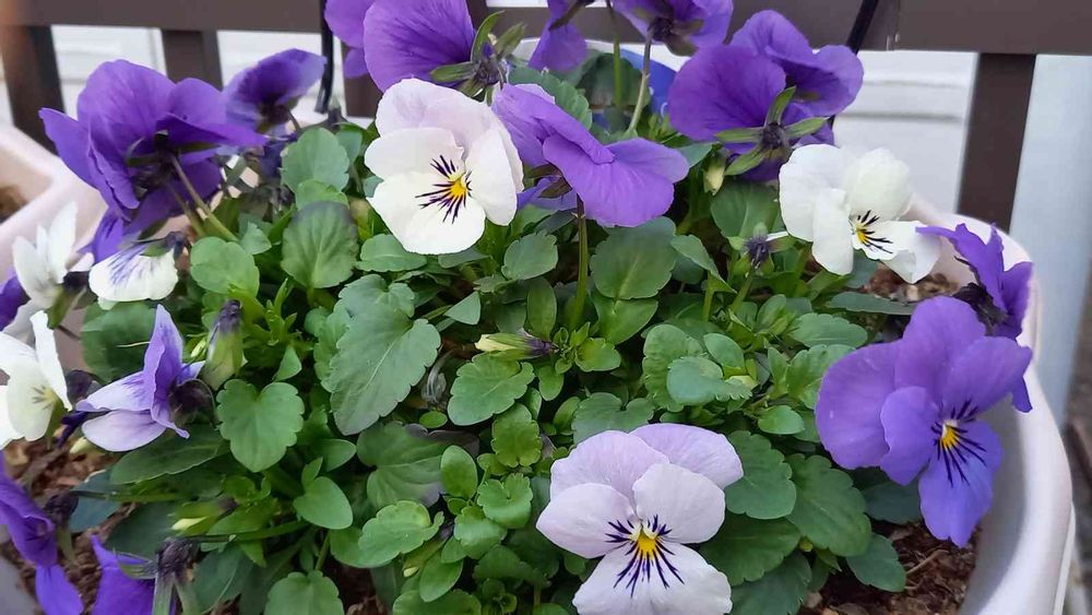 咲き始めの白🤍から青青💙そして紫💜へと咲き進むビオラ