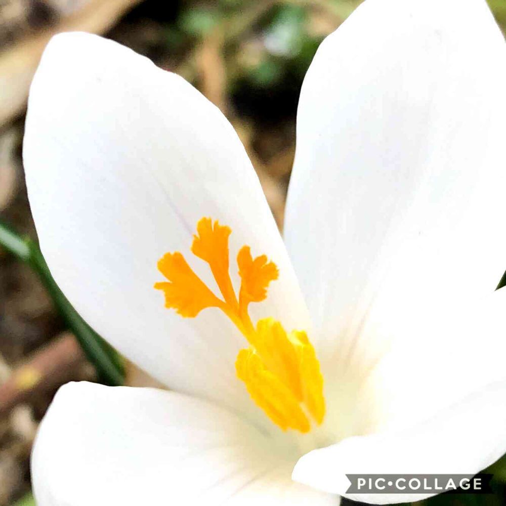 クロッカスが咲いてくれました💕ラテン語で「糸」。雌しべの形が糸のように垂れ下がる事からきています。しかし、実際の雌しべの形は様々です。ウチのは黄色い工作用のモールを付けたようでした。