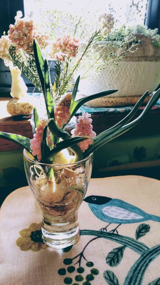 土に植えてあったのを、途中から、水栽培に〜終わったら、庭植えですね〜ブルーノが、植えっぱなしですけど、葉が長いので、きったら、でてこなくなり〜🤣💚〜ライスフラワーは、枯らしてしまったので、今年、かおうとしたのですが、高すぎて〜泣く泣く、ドライを〜´¯`(>▂<)´¯`·.